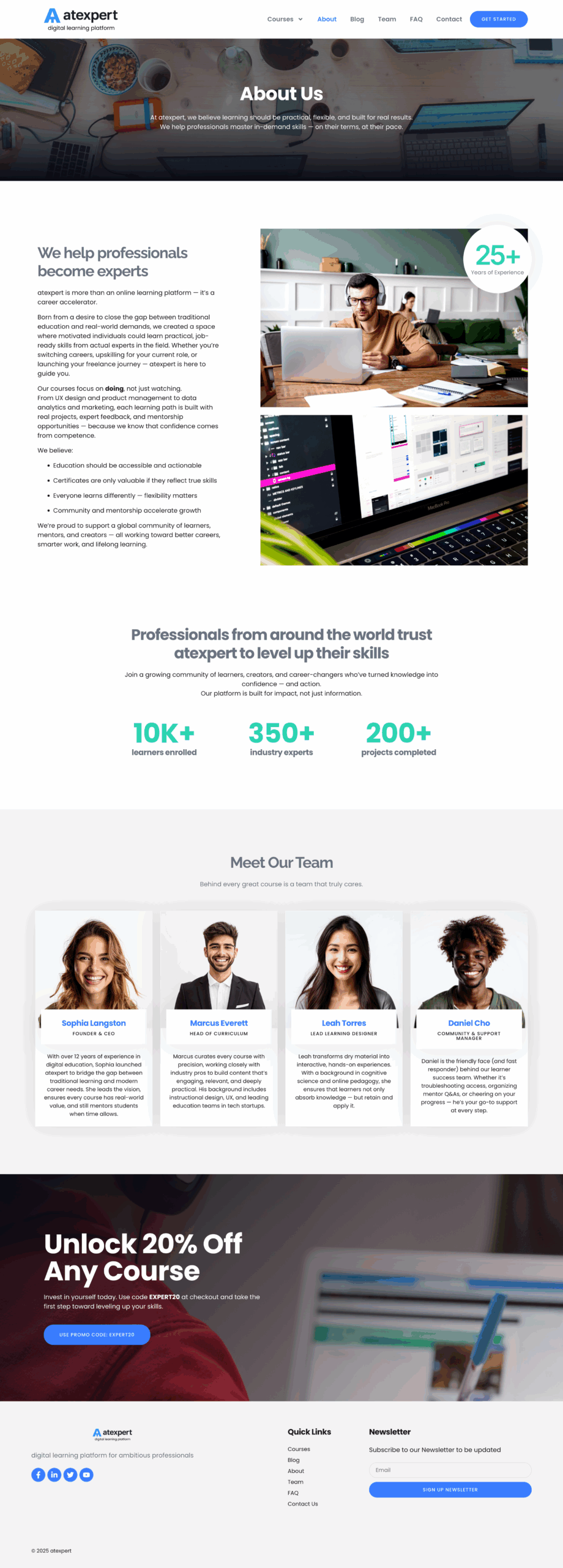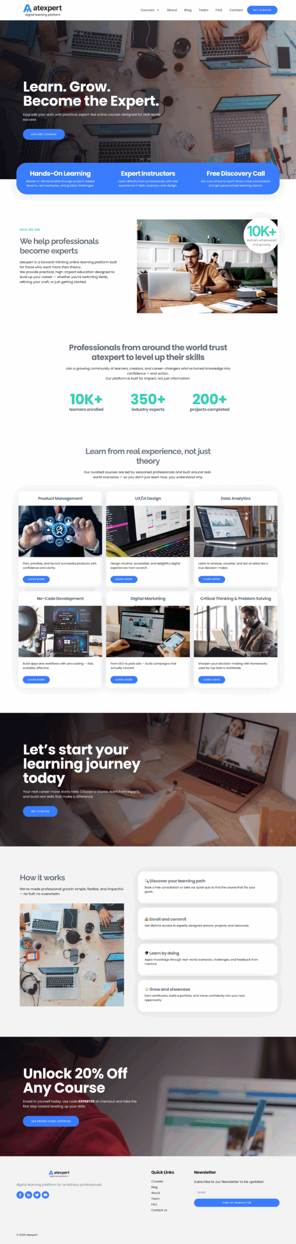 Atrix gives educators a strong foundation for building a professional learning environment. It supports clear communication, organized lessons, and smooth site navigation. Through its thoughtful structure, intuitive flow, and flexible layouts, Atrix helps you deliver content effectively while creating an inspiring and trustworthy learning space for your students.
