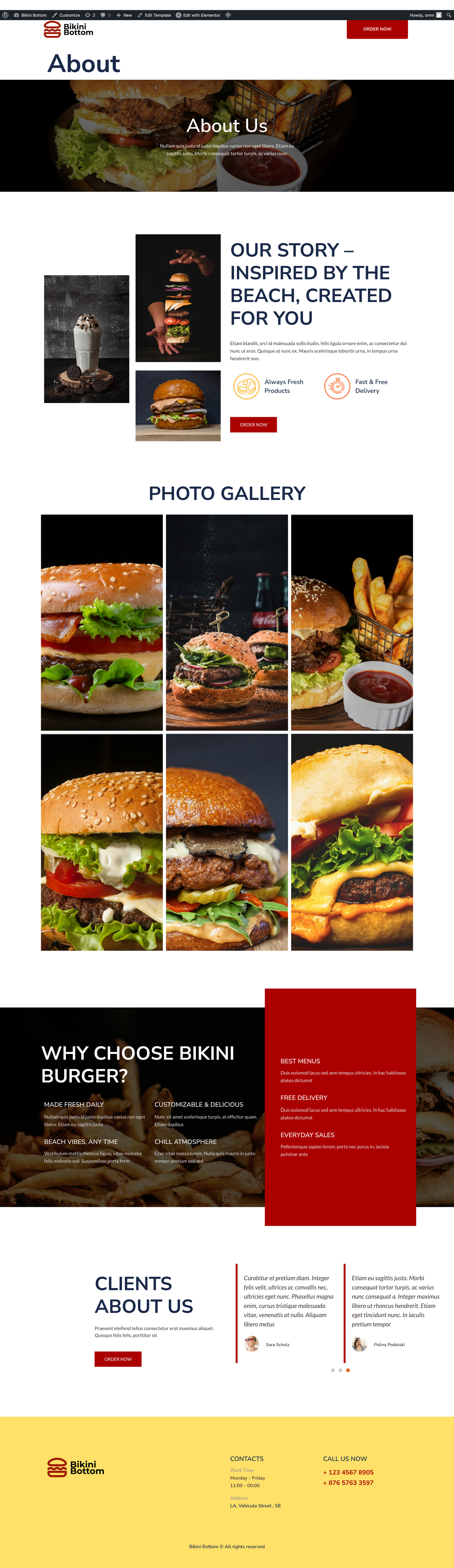 Bikina – Elementor Template Kit for Burger Restaurants