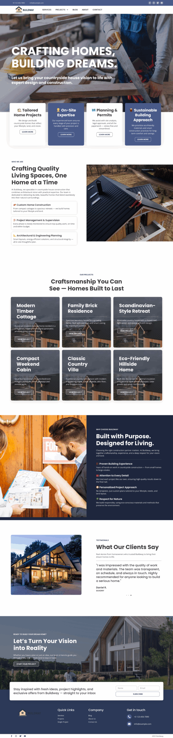 Whether you focus on countryside homes, sustainable housing, timber construction, or complete remodeling solutions, this template supports your brand’s growth. It allows you to present your craftsmanship clearly and inspire potential customers to take action. Start strengthening your online presence and grow your construction business with Buildimo today.