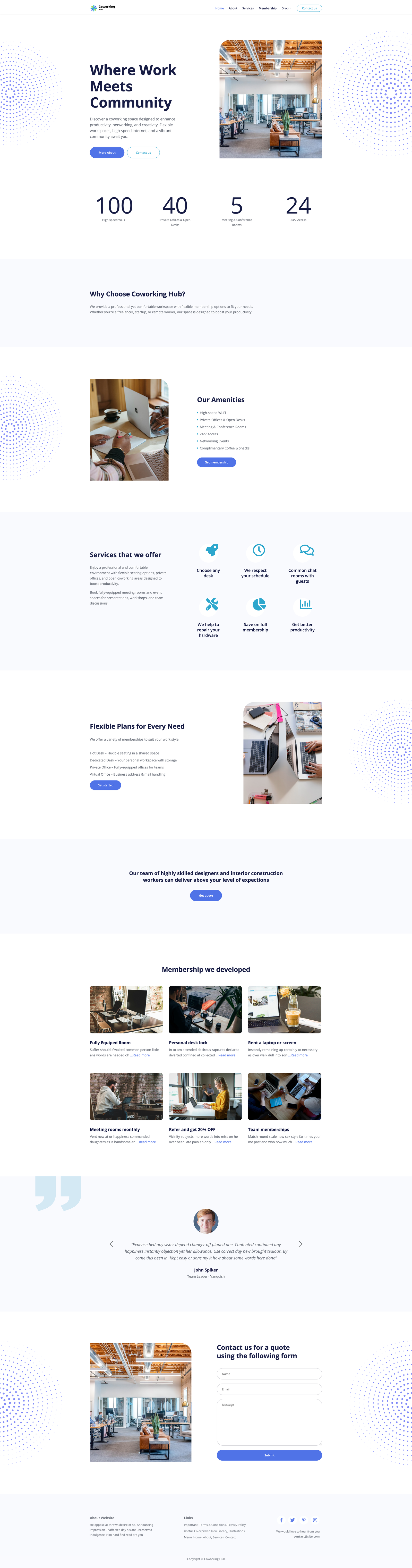 ✔ Online Booking & Contact Forms – Allow visitors to reserve workspaces easily.
