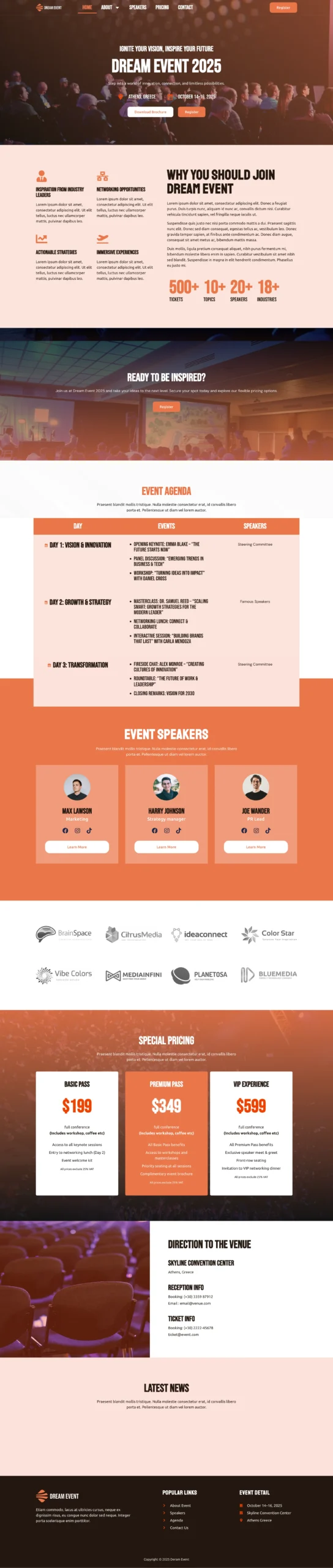 DreamEvent is a polished and modern Elementor event conference template designed for conferences, corporate gatherings, seminars, workshops, and meetups. With its clean structure, bold visuals, and intuitive layout, the kit helps you promote your event, highlight speakers, outline schedules, and increase attendee registrations with ease. Fully responsive and optimized for engagement, DreamEvent ensures your event looks professional on every device.