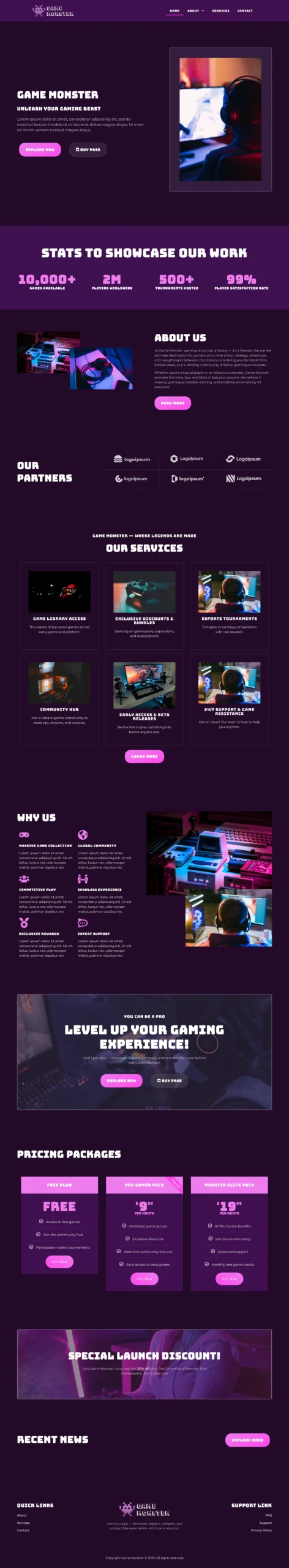 Game Monster – Elementor Template Kit for Gaming News, Passes & Community Content