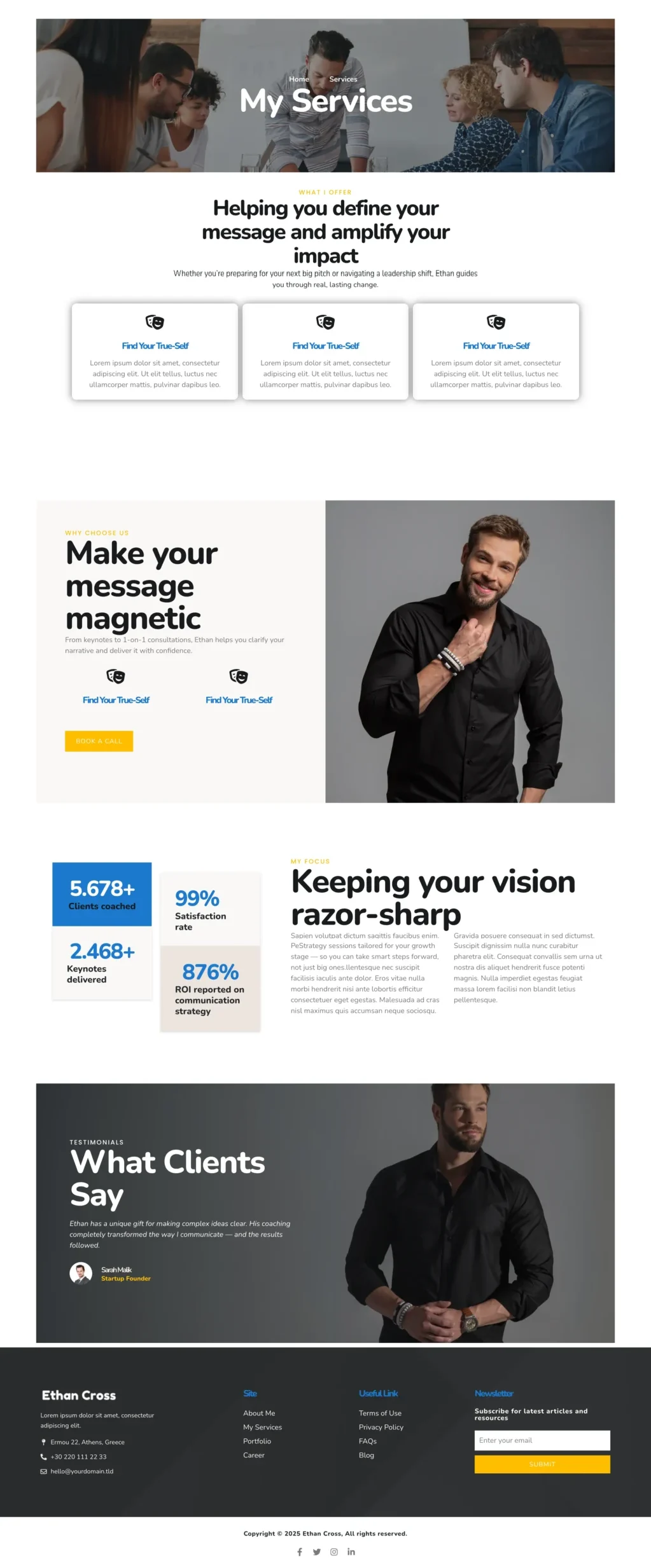Because it is built with Elementor Pro, the Spkio template supports full customization without any coding. Whether you’re a keynote speaker, motivational coach, or business mentor, the template provides a polished and conversion-driven platform to expand your presence and secure more speaking opportunities.